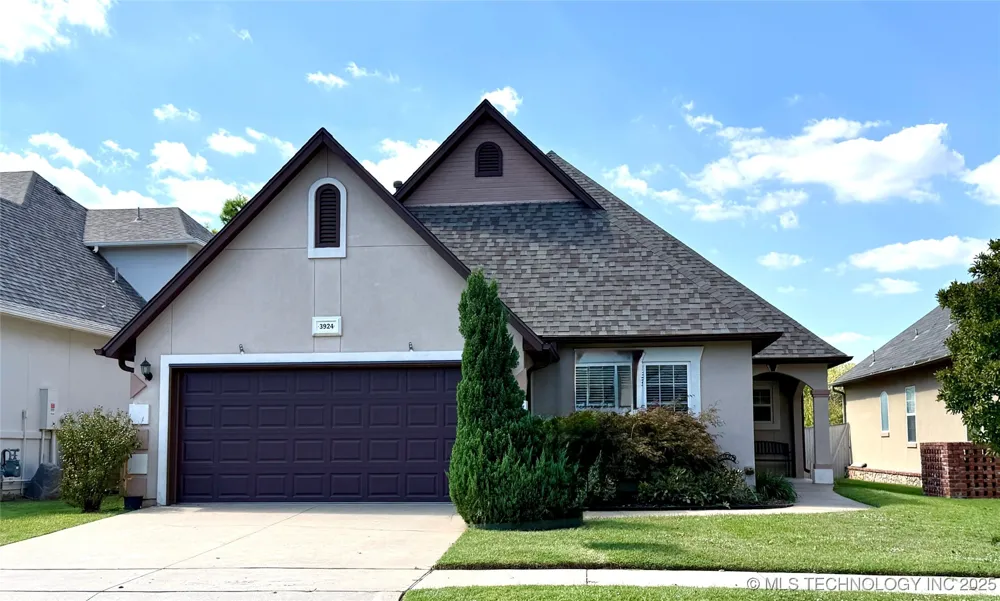 Located in the gated Magnolia Gardens community at Battle Creek Golf Course, this single-story home offers 3 bedrooms, 2 full baths, and a functional layout. The kitchen features granite counters, pantry, dining bar, and newer appliances—stove and microwave less than 2 years old, stainless refrigerator and dishwasher under a year old. Gorgeous hardwood floors in entry and kitchen. The living room includes tall ceilings, porcelain tile flooring, and a marble-surround fireplace. The primary suite is separate from secondary bedrooms and offers a custom closet with built-in jewelry case. Large closets are found throughout, plus additional attic storage. Roof is less than 10 years old. Outside features include a covered patio, new pressure-treated wood pergola, fenced yard, and sprinkler system. Community amenities include walking trails and ponds. Broken Arrow schools and quick access to shopping, dining, and highways complete the package.