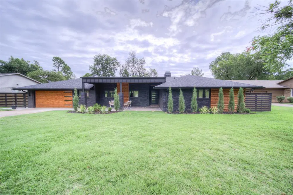 Midcentury modern makeover in heart of midtown, Ranch Acres addition! 4 bed or 3 bed w/office & 3 full baths. 2 true masters, both with en suites. Open & bright with w/9’ ceilings and wet bar. Large kitchen w/10’ Quartz waterfall island, high end appliances with custom white oak cabinets. Sliding glass doors leading to 300 sf covered patio with outdoor kitchen & fireplace. Completely remolded to the studs and everything new. New front elevation with LARGE covered porch. ALL NEW plumbing, electrical, tanks less HW, new duct work, insulation, sheetrock, interior/exterior paint, flooring, doors, roof & Andersen windows. Newer HVAC. Professionally landscaped with irrigation system on expansive .36 acre m/l lot.
